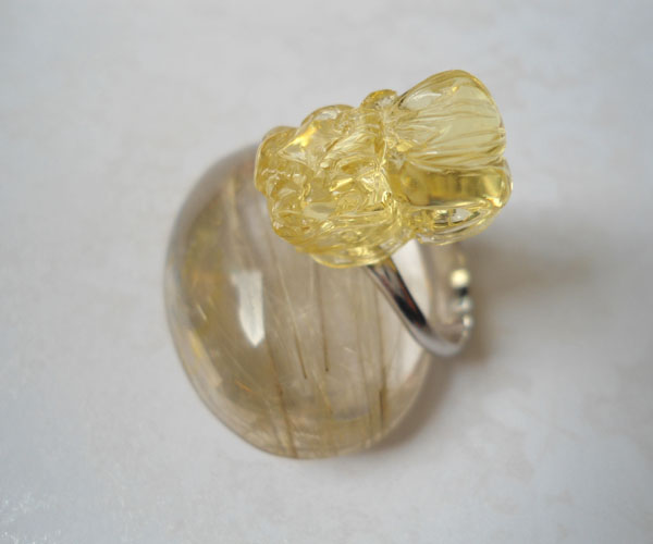 Nhẫn tỳ hưu đá phong thủy thạch anh vàng Nam Mỹ tránh thị phi S757